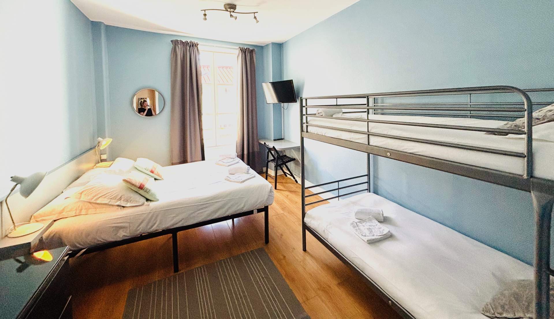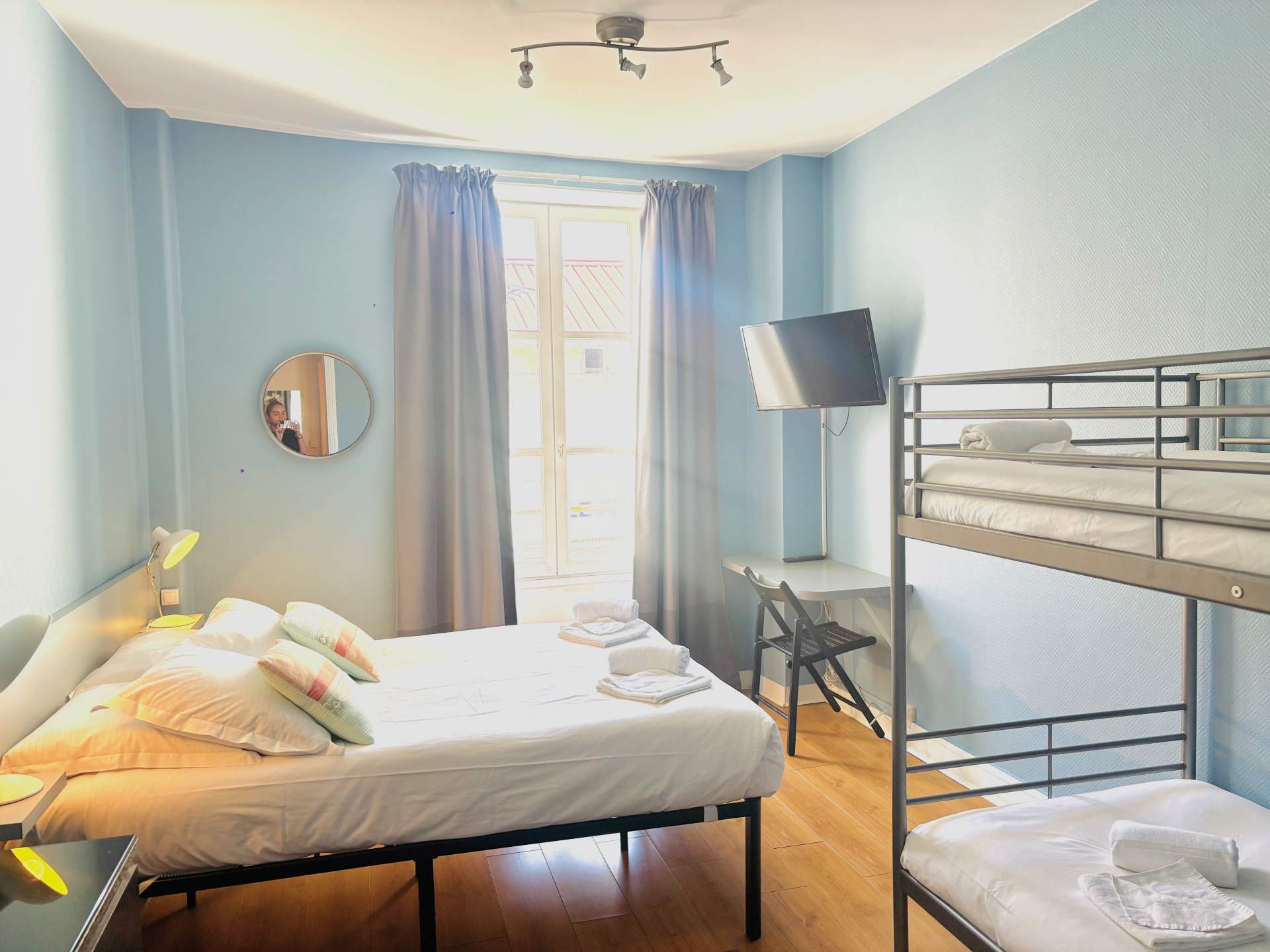 Dans un espace d'environ 30 m², cette chambre familiale assure le confort de tous. Équipée d'un grand lit double, de deux lits superposés ainsi que d'une salle de bain, elle sera idéale pour une famille de 3 ou 4 personnes.